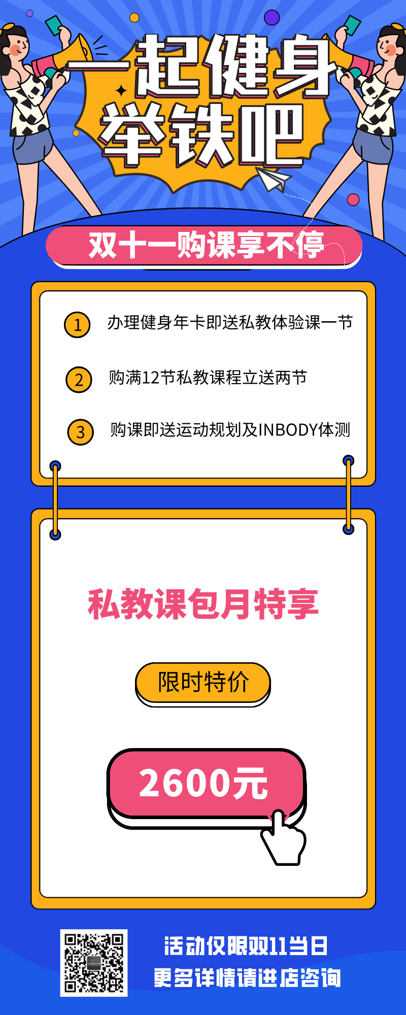 健身私教课:包月享受2600元包月价。