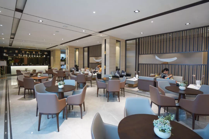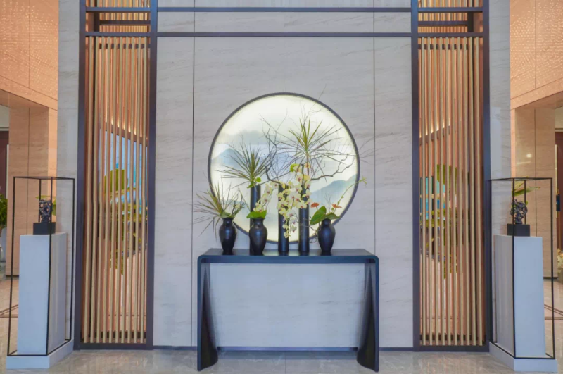 “我们这里采用富含古典文化的新中式设计风格,同时以中国传统古典文化为背景。比如瓷器等极富古典韵味的摆件,让整个大厅散发出迷人的东方古韵。”王腾飞轻轻挥着手臂,耐心地给我们做着讲解。